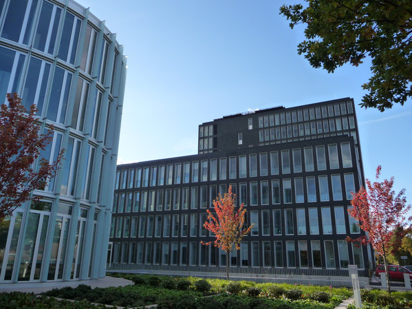 | Baubeschreibung: | Dreistöckiges Bürogebäude mit Punkt- haus und Verbindungsbrücke |