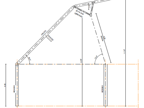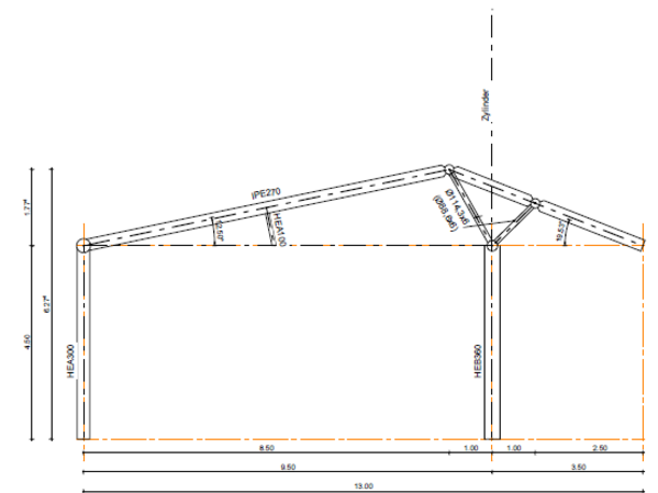 | Leistungsumfang: | Statische Berechnung eines Stahltragwerks mit Satteldach |