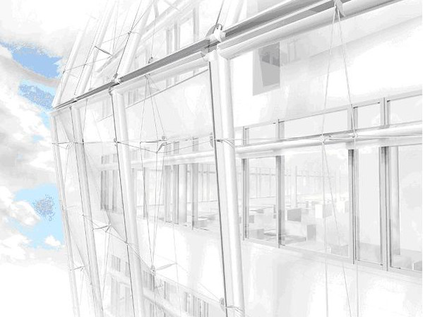 | Leistungsumfang: | Überprüfung der gegenseitigen Beeinflussung der Seilnetzfassade und der Betonschale |