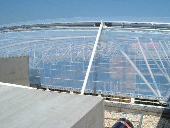 | Leistungsumfang: | Tragwerksplanung für die Überdachung, bestehend aus ETFE-Membran und Stahltragwerk für die Lüftungsklappen |